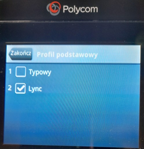 Telefony ustawione na obsługę MS Skype for Business ( Lync ) można zmienić w menu na SIP