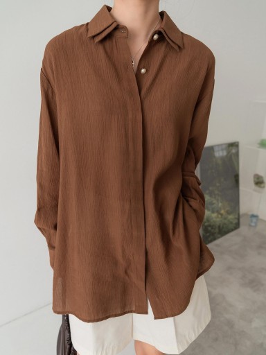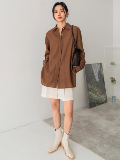 A018R7 КОРИЧНЕВАЯ СВОБОДНАЯ КЛАССИЧЕСКАЯ РУБАШКА DAZY XL