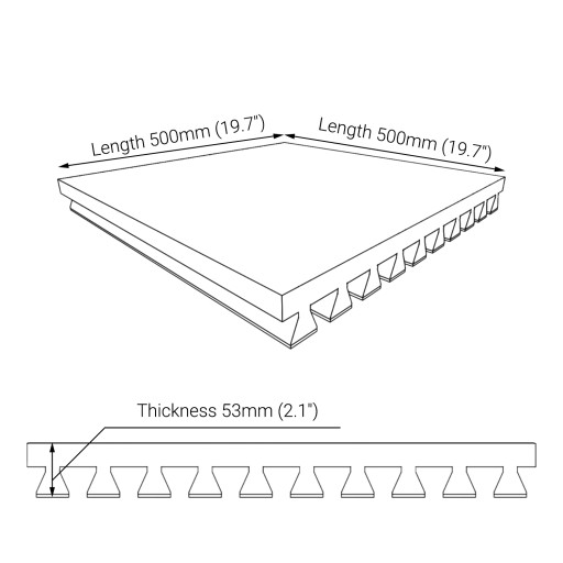 - Pokrycie powierzchni = 0,5 m² / (5,39 ft²)