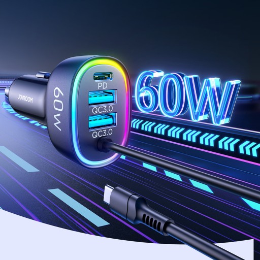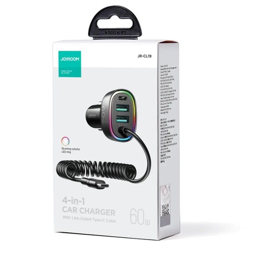 Ładowarka samochodowa marki Joyroom do złącza zapalniczki to podstawowy gadżet, który w obecnych czasach jest niezbędnym wyposażeniem każdego samochodu. Kierowcy, a tym bardziej Ci zawodowi, którzy spędzają w aucie bardzo dużo czasu muszą mieć możliwość naładowania baterii w telefonie bez względu na to, gdzie się aktualnie znajdują. Dlatego tak ważne jest, żeby posiadać w swoim samochodzie ładowarkę dobrej klasy. Ta ładowarka jest idealnym wyborem ponieważ jej moc sięga aż 60W! Umożliwia to bardzo efektywne ładowanie telefonów i innych urządzeń elektronicznych. Ma 2 porty USB, 1 USB Typ C oraz wbudowany kabel USB Typ C o długości 1,6 m. Możesz za jej pomocą ładować 4 urządzenia na raz.