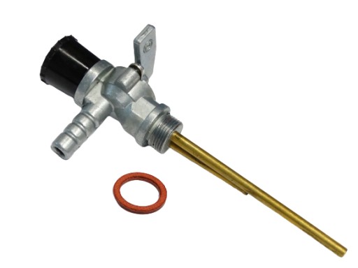 Fabrycznie nowy kranik paliwa do motocykli WSK, WFM i motorowerów marki Romet oraz inne – w komplecie z uszczelką/podkładką fibrową 14x19x2. Cena dotyczy 1 kompletu widocznego na zdjęciu.