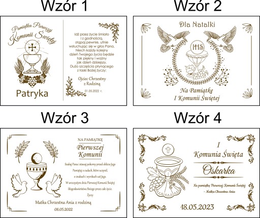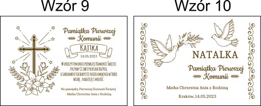 ✔️ Imię dziecka w formie odmienionej- (np. Pamiątka Pierwszej Komunii Świętej Amelki)