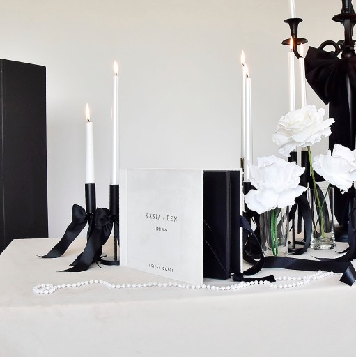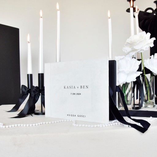 Zanurz się w świecie luksusu z naszą welurową Księgą Gości dostępną w czerni i bieli. Perfekcyjny detal, który stworzy niezapomnianą pamiątkę z dnia ślubu.
