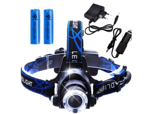 MOCNA LATARKA CZOŁOWA LED CZOŁÓWKA T6 ZOOM NA GŁOWĘ ZESTAW AKUMULATOROWA