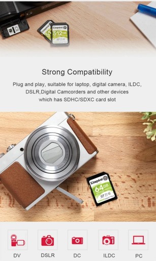 Karta SD Canvas Select Plus firmy Kingston odznacza się olbrzymią wydajnością, szybkością i trwałością. Nadaje się idealnie do pracy przy wysokich obciążeniach, takich jak przesyłanie i obróbka zdjęć w wysokiej rozdzielczości oraz rejestrowanie i montaż wideo Full HD. Zaawansowany interfejs UHS-I i szybkość klasy 10 UHS-I (odczyt do 100MB/s) zapewniają bezproblemowe i szybkie zapisywanie filmów wideo w kinowej jakości Full HD i 4K Ultra HD. Karty SD Canvas Select Plus są poddawane rygorystycznym testom trwałości w najtrudniejszych środowiskach i warunkach pracy dlatego możesz je zabrać w drogę i mieć pewność, że Twoje pliki, zdjęcia, filmy i pliki są bezpieczne.