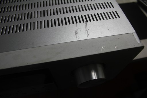 Amplituner nosi ślady użytkowania w postaci rys i przetarć głownie nad panelem przy górnej obudowie jak na foto