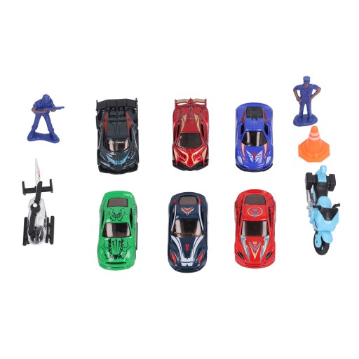 Funkcja:1. 8 sztuk modeli samochodów: 8 różnych kształtów i kolorów modeli zabawek samochodowych, które mogą stymulować ciekawość dzieci i mają różne sposoby zabawy.