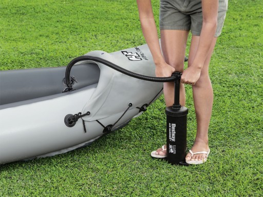 Nadmuchiwany kajak BESTWAY Rapid Elite X2 to dwuosobowy, bardzo wytrzymały kajak sportowy, którym można pływać zarówno po spokojnych, jak i falujących wodach. Zastosowany materiał Inflata-Shield Pro™ zapewnia doskonałą odporność na przebicie, ogólną sztywność i stabilność łodzi. Kajak posiada solidną i sztywną nadmuchiwaną podłogę oraz dwie dmuchane poduszki do wygodnego siedzenia. Dopasowana do kształtu konstrukcja zapobiega przedostawaniu się wody do kokpitu, niepożądana woda może być odprowadzana przez zawór. Kajak zawiera wyjmowaną płetwę dla większej stabilności, uchwyty do przenoszenia i dwa aluminiowe wiosła o długości 230 cm.