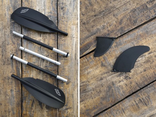 - Zawartość opakowania: 1x kajak, 2x wiosło, 2x siedzisko, ręczna pompa pneumatyczna, 2x płetwa, torba do przenoszenia, zestaw naprawczy