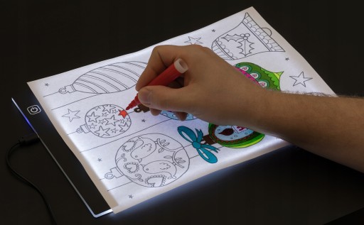 Dzięki bardzo dobremu podświetleniu LED o natężeniu max 350 lm z łatwością odrysujesz obraz lub rysunek; wbudowana lampa prześwietli się na kartkę papieru. W celu polepszenia efektu można przyciemnić światło w pomieszczeniu.