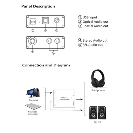 Konwerter audio USB-DAC ma wyjście analogowe, koncentryczne / optyczne wyjście cyfrowe i wyjście słuchawkowe, które można wyprowadzić na słuchawki i używać bezpośrednio jako karta dźwiękowa USB.