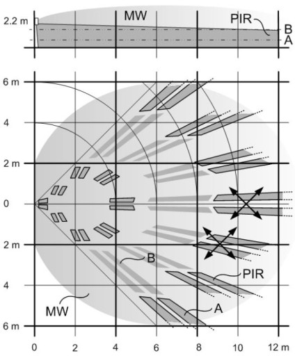Zastosowana w urządzeniu optyka podwójnego lustra zapewnia jednorodne pokrycie i czułość we wszystkich obszarach w polu detekcji Wysoka odporność na fałszywe alarmy