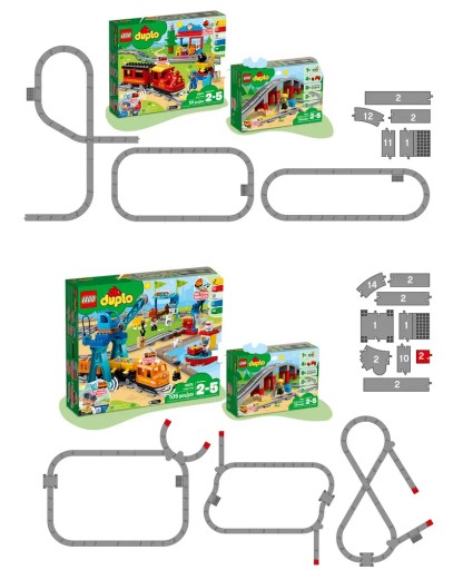 - Tory z zestawu pasują do istniejących pociągów LEGO DUPLO, którymi bawi się Twoje dziecko.