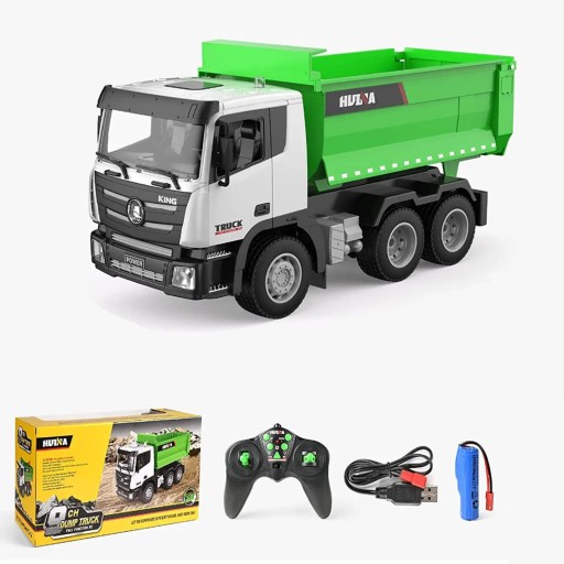 Realistycznie wyglądająca duża ciężarówka RC przyciąga uwagę swoim wyglądem. Podnoszona naczepa z otwieraną tylna klapą tylną, co ułatwia wysypanie załadunku. Od teraz transportowanie ładunku będzie łatwiejsze i przyjemniejsze. Efekty dźwiękowe takie jak odgłos pracującego silnika i świetlne dodają frajdy całej zabawie.