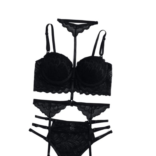 Biustonosze I Majtki Ustawia Krótki Koronkowy Podwiązka Bielizna Bielizna Black S
