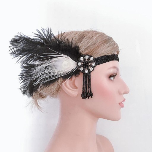 Damska opaska na głowę z piórami w stylu vintage z lat 20. XX wieku