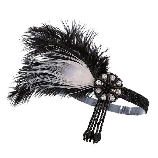 opaska z kryształków i sztucznych piór, damski nakrycie głowy w stylu lat 20./30.