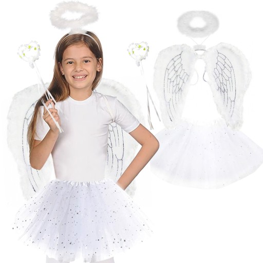 Zestaw składa się z spódniczki tutu 2- warstwowej, aureoli, skrzdeł oraz różdżki.