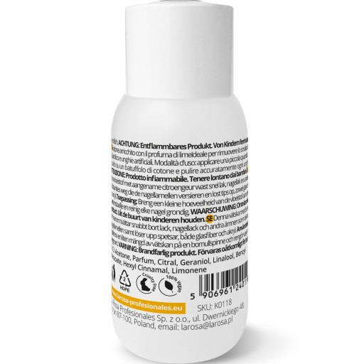 Sto procent czysty aceton kosmetyczny o zapachu limonki. Profesjonalne narzędzie do stylizacji paznokci o dużej wydajności i trwałość.