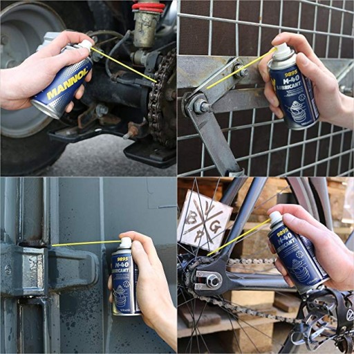 MANNOL M-40 Lubricant smaruje, czyści, rozpuszcza i chroni przed rdzą. Mieszanka wysoce skutecznych substancji i olejów, nie tylko poluzowuje wszelkiego rodzaju zardzewiałe elementy w ich najwęższych szczelinach, ale także gwarantuje płynność ruchu części ruchomych. Zdolność odprowadzania oraz rozpraszania wody i właściwości antykorozyjne zapewniają ochronę przed korozją i utlenianiem. Czyści zapieczony brud, pozostałości oleju i smaru. Nieszkodliwy dla lakieru, gumy i plastiku.