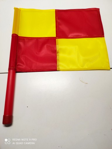 Chorągiewka sędziowska żółta .Proporzec 30 x 40-dederon flagowy. Uchwyt dł 45 cm-tworzywo sztuczne.