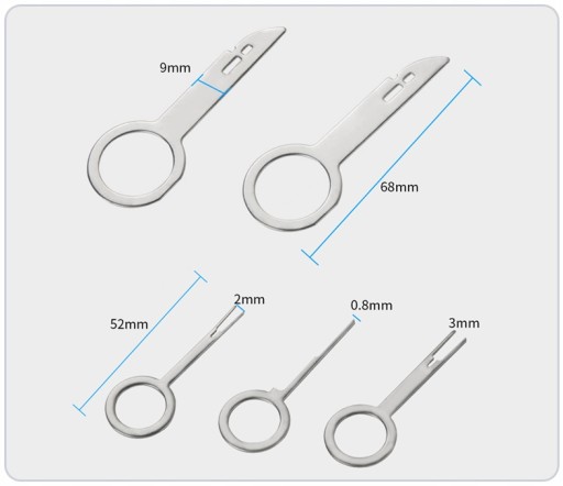 - Zestaw 2 kluczy (wyjmaków) przeznaczony do demontażu radia samochodowego lub nawigacji. Klucze pozwalają w bardzo prosty i szybki sposób wyjąć radio lub nawigację z samochodu bez uszkodzeń deski rozdzielczej lub panelu środkowego.