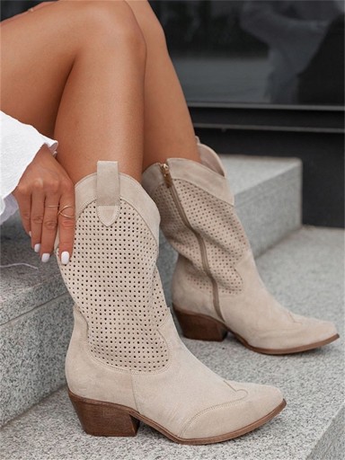 Botki Ażurowe Na Słupku Wiosenne Zamszowe