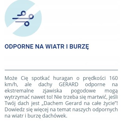 Może Cię spotkać huragan o prędkości 160 km/h, ale dachy GERARD odporne na ekstremalne zjawiska pogodowe mogą wytrzymać nawet to! Nie trzeba się martwić, jeśli Twój dach jest „Dachem Gerard na całe życie”! Dowiedz się więcej na temat naszych odpornych na wiatr i burzę dachówek.