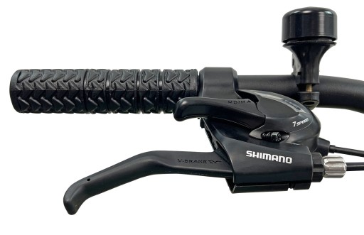Rower został wyposażony w aluminiowy wspornik kierownicy, który charakteryzuje się przede wszystkim niezawodnością, trwałością i lekkością. Manetki kierownicy zostały pokryte specjalnym antypoślizgowym materiałem, który zapewni pewny chwyt. Dodatkowym atutem jest dzwonek zamontowany na kierownicy.