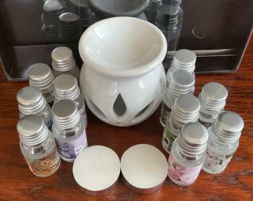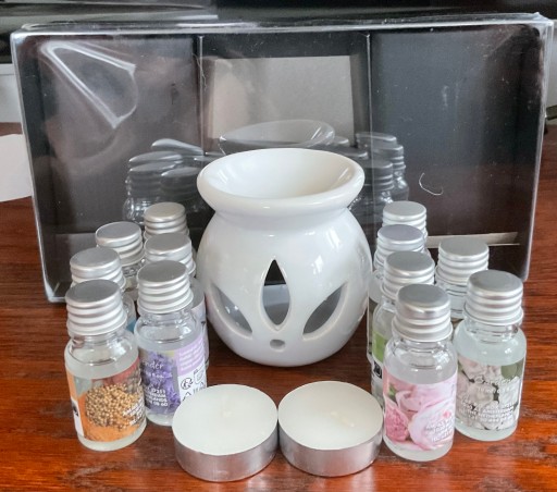 Kominek ceramiczny z olejkami zapachowymi i świecami tealight zestaw 15 el.
