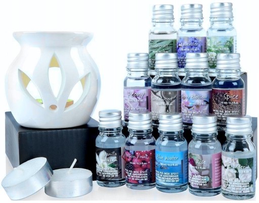 Zestaw zawiera 12 olejków zapachowych o pojemności 10 ml każdy.