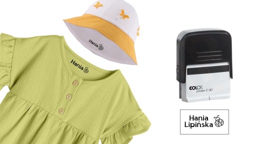 - specjalny tusz do odzieży - pozostaje widoczny nawet do 15 cykli w pralce. Nie ma na rynku tuszu niezmywalnego! Nawet kolor z ubranek z czasem się spierze, dlatego nie wierzcie sprzedającym, którzy twierdzą, że stempel nigdy się nie zmyje. Po kilku praniach, jeśli odbicie stało się nieczytelne - po prostu jednym kliknięciem oznaczasz ponownie. Stempel najdłużej trzyma się na materiałach naturalnych- bawełna, len, jedwab. Tkaniny syntetyczne tj. nylon, perlon, elastyny i poliakryle mogą gorzej wchłaniać tusz i szybciej spierać.