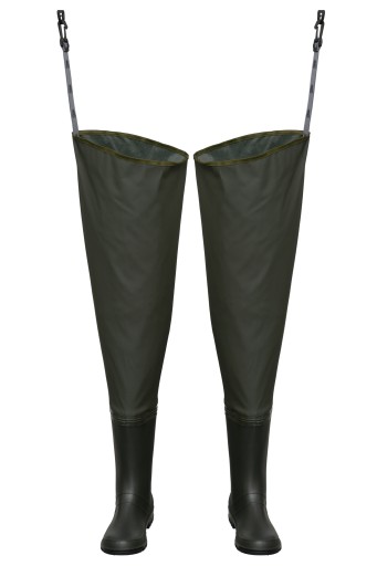 Wodery wykonane z wysokiej jakości materiału poliestrowego. Nowoczesna technologia zgrzewania szwów, gwaratnuje stuprocentową wodoodporność i dużą odporność na uszkodzenia. Kalosze wyposażono w podeszwę z bieżnikiem, co gwarantuje dużą stabilność