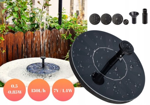 Fontanna ogrodowa solarna jest przeznaczona do małych oczek wodnych, basenów ogrodowych i innych przydomowych zbiorników wodnych. Wystarczą już 3 sekundy w pełnym słońcu, aby fontanna zaczęła działać, a wysokość strumienia osiągać nawet 50 centymetrów wysokości. Fontanna ogrodowa dzięki pompie wody pomaga utrzymać równowagę biologiczną w oczku wodnym poprzez odpowiednie napowietrzenie wody, a ciągły ruch wody zapobiega jej mętnieniu w zbiorniku.