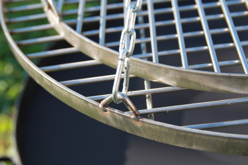to trwałe i funkcjonalne rozwiązanie, idealne do efektywnego grillowania. Odporny na rdzę, z trzema oczkami do mocowania łańcucha i opaską ochronną. Wykonany z pręta 4 mm gwarantuje nie tylko smaczne potrawy, ale także długotrwałą użyteczność. Dzięki możliwości zawieszenia na łańcuchu, regulacja wysokości jest prosta. Atutem jest również atrakcyjna cena, co czyni go doskonałym wyborem dla miłośników różnorodnego grillowania.