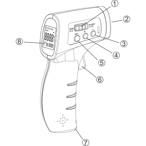 Urządzenie zostało zaprojektowane do pomiaru temperatury ludzkiego ciała wykorzystując do tego podczerwień. Umożliwia pomiar ciała w zakresie temperatur 32°C~43°C, pozwala również na pomiar temperatury innych obiektów o zakresie temperatur od 0°C do 100°C. Pomiar temperatury ciała najlepiej wykonywać na czole. Termometr należy trzymać w odległości około 5 centymetrów od czoła. Od momentu naciśnięcia przycisku do pokazania wyniku na wyświetlaczu powinno minąć mniej niż 2 sekundy. Krótki czas reakcji urządzenia pozwala na szybkie wykonywanie pomiaru. Jest to wygodne rozwiązanie, szczególnie dla rodziców, których dzieci są zniecierpliwione mierzeniem temperatury. Pomiar przebiega bezinwazyjnie, tzn. bez potrzeby angażowania osoby, której mierzona jest temperatura. Urządzenie posiada również tryb pomiaru temperatury otoczenia, co pozwala na zmierzenie temperatury m. in. wody czy jedzenia.