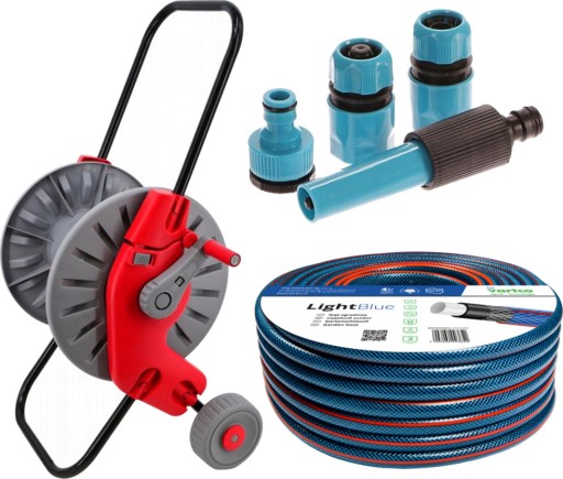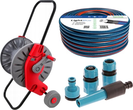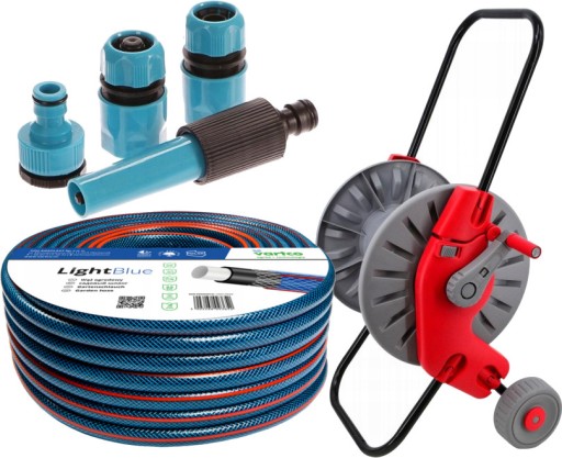 4-СЛОЙНЫЙ САДОВЫЙ ШЛАНГ 22 БАР 1/2" 30 М + СОЕДИНИТЕЛИ + ТЕЛЕЖКА, БАРАБАН, ПОДСТАВКА, КАТУШКА