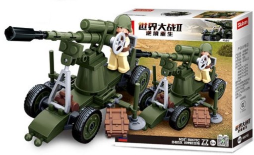 Zestaw WOJSKO DZIAŁO PRZECIWLOTNICZE ARMATA FLAK składa się z 77 elementów w postaci klocków i figurki. Jest on kompatybilny z innymi najpopularniejszymi klockami dostępnymi na rynku !