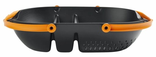 Część z durszlakiem posiada otwory, które pozwalają umyć zebrane warzywa czy owoce.