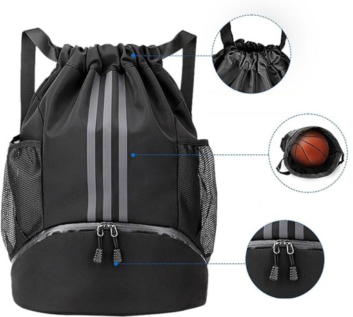 - ✅-Dwie boczne kieszenie siatkowe plecaka na siłownię mogą służyć do przechowywania butelek z wodą i parasoli. Przednia kieszeń na chusteczki i przybory toaletowe. Wewnętrzna kieszeń zapinana na zamek przeznaczona jest do przechowywania drobnych przedmiotów wartościowych, takich jak zegarki sportowe i portfele. Dolna komora torby umożliwia spakowanie dodatkowej pary butów treningowych.