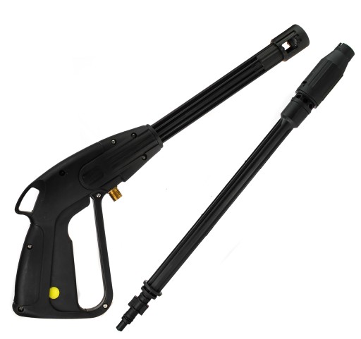 Pistolet z lancą do myjki wysokociśnieniowej, wyposażony w regulację szerokości strumienia. Dzięki zastosowaniu typowego gwintu (14 mm) pistolet pasuje praktycznie do wszystkich myjek ciśnieniowych dostępnych na polskim rynku.