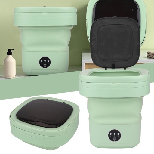 Składana konstrukcja: Mała przenośna pralka sprytnie przyjmuje składaną konstrukcję ułatwiającą przechowywanie, łatwo mieszczącą się między półkami lub pod łóżkiem, nie zajmując zbyt dużo miejsca w domu.
