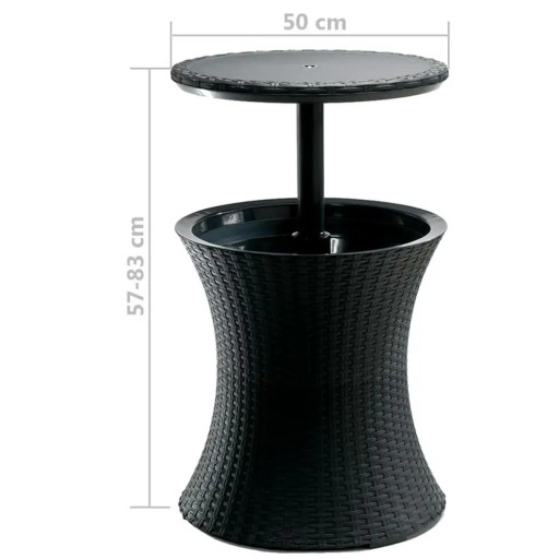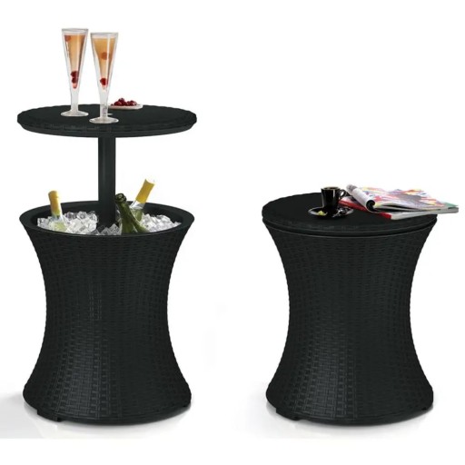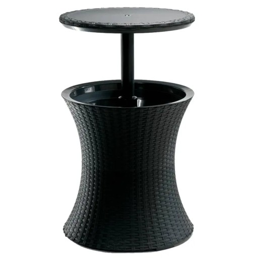 Designerski barek ogrodowy Cool Bar Rattan to znakomita propozycja dla osób często organizujących przyjęcia w ogrodzie. Ten niezwykle funkcjonalnie zaprojektowany barek posłuży jako podręczny stolik koktajlowy lub klasyczny barek z pojemnikiem do schładzania napojów o pojemności 30 l. Atutem barku jest również jego design – struktura rattanowej plecionki oraz ciekawa linia barku z wcięciem w środku przykuwa uwagę i idealnie wkomponowuje się w otoczenie domu lub mieszkania. Produkt został wykonany z najwyższej jakości tworzywa, całkowicie odpornego na szkodliwe działanie czynników atmosferycznych. Jest wyjątkowo łatwy w utrzymywaniu w czystości.