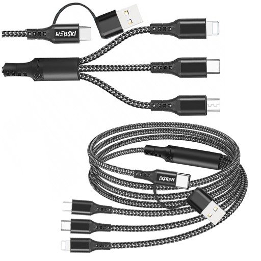 🗹 WEBSKI® NYLONOWY KABEL COMBO 3A - PRO Series 6w1- O DŁUGOŚCI 120CM Z ADAPTEREM USB-TYP C🔌• USB TYP-C • microUSB • Lightning iPhone •