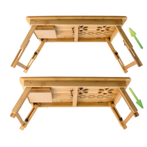 Ze stolikiem pod laptopa z wentylacją możemy raz na zawsze zapomnieć, czym jest niewygoda przy korzystaniu z komputera. W bambusowym stoliku pod laptopa można regulować kąt nachylenia blatu.