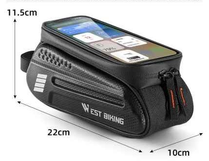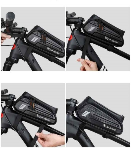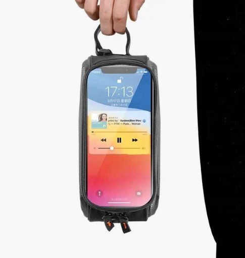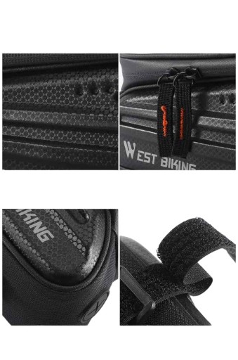 Torba rowerowa 2 w 1 firmy West Biking służąca jako wodoodporne etui na telefon oraz schowek na wszelkie drobiazgi. Przezroczysty dotykowy ekran wykonany z termoplastycznego poliuretanu, który zapewnia ponad 90% czułości na dotyk.