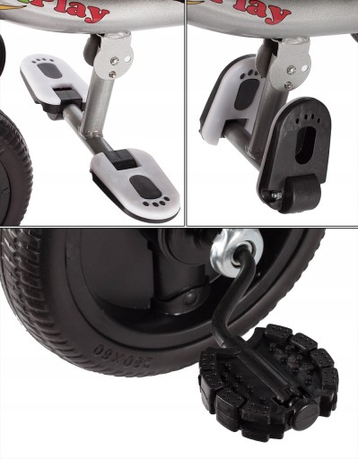 Stopy malucha ułożone na pedałach nie ślizgają się, dzięki ich specjalnej antypoślizgowej strukturze . Wykonane zostały z wytrzymałego, twardego plastiku.