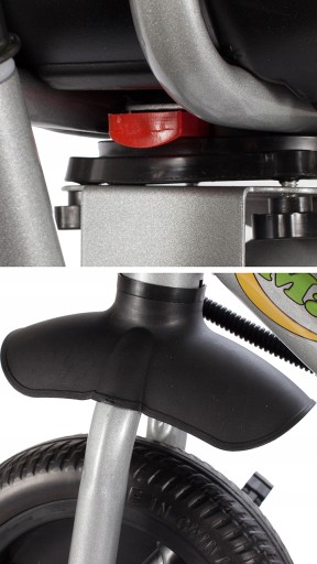 W naszym rowerku jest możliwość obrócenia siedziska o 360 stopni w zależności od potrzeby i wieku dziecka. Młodsze dzieci powinny jeździć przodem do rodzica, dzięki czemu mają oni cały czas kontrolę nad bezpieczeństwem malucha podczas jazdy. Gdy dziecko podrośnie może już same przejąć kontrolę nad rowerkiem i wyznaczać jemu kierunek jazdy siedząc tyłem do rodzica. Rowerek posiada blokadę uniemożliwiającą samoistną zmianę pozycji siedziska podczas jazdy.