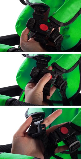 - Barierka z ukrytym rozpięciem, uniemożliwiająca samodzielne wypięcie się
