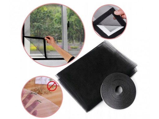 МОСКИТНАЯ СЕТКА ДЛЯ ОКОННЫХ НАСЕКОМЫХ 150х150 + ВЕЛКРО ЧЕРНАЯ ПРОТИВ НАСЕКОМЫХ И КОМАРОВ